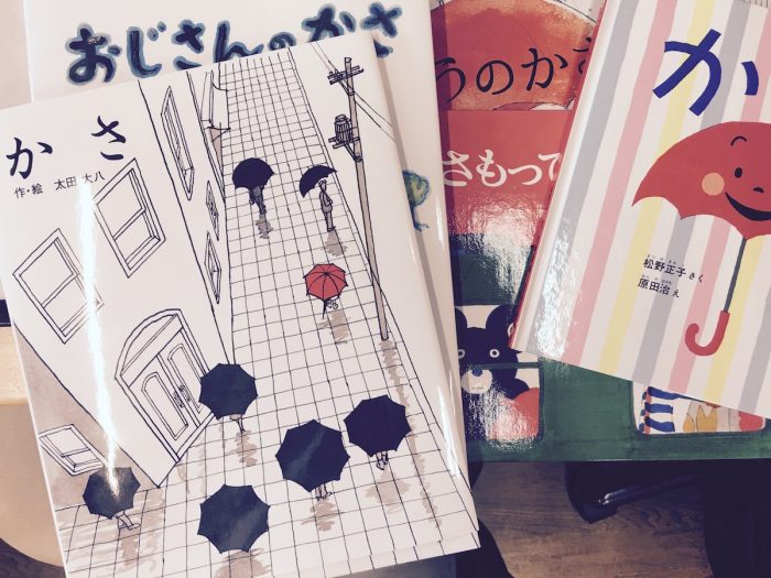 今月、彼が傘をテーマに選んだ本は全部絵本。