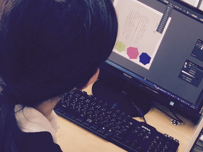 デザイン学校出身の彼女は、イラストレーターで傘をセンス良く図案化。