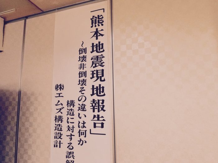 熊本地震の現地調査を通じて、耐震設計施工の大切さを伝えている。「エムズ構造設計」さまの講習勉強会。
