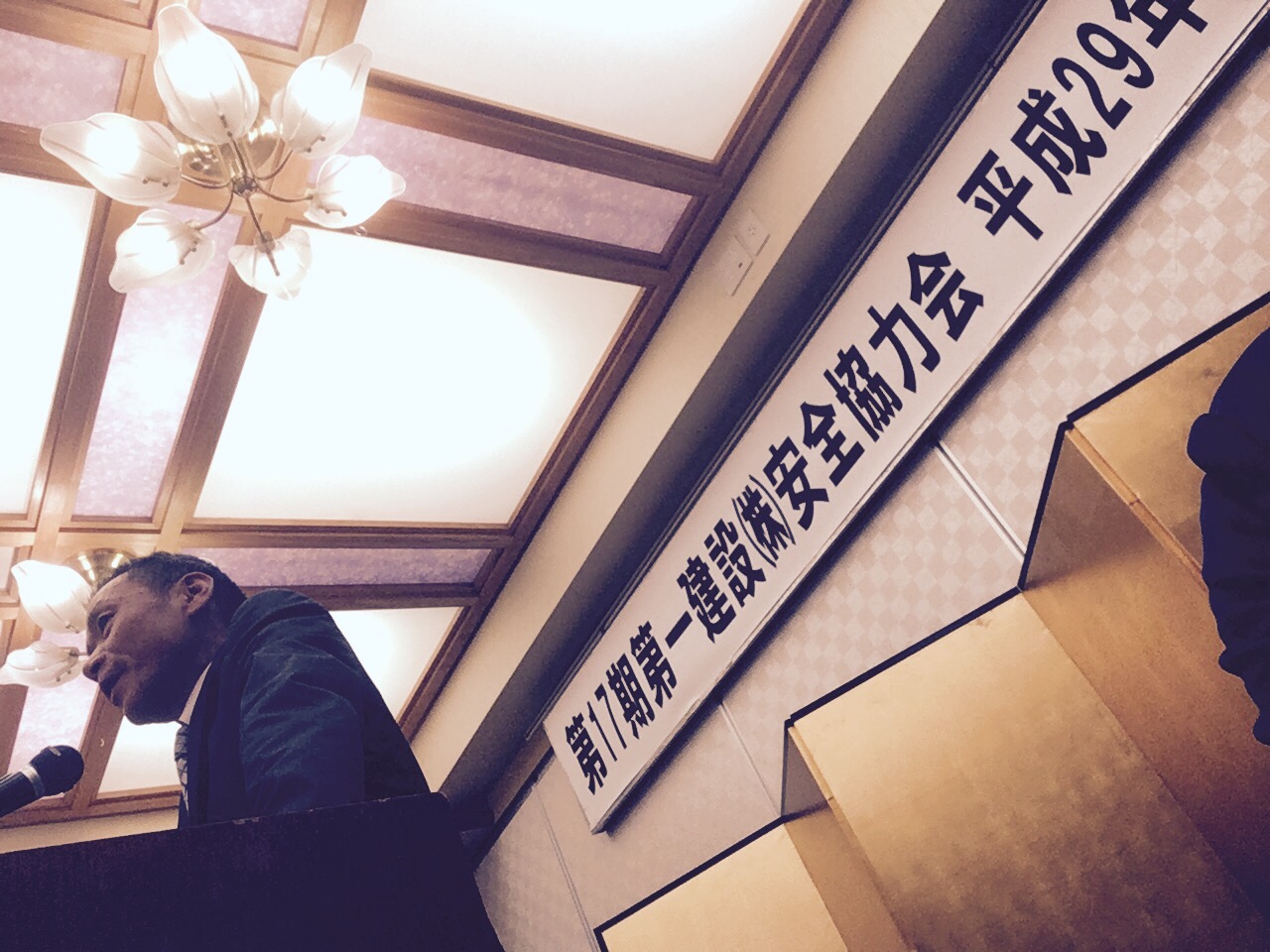 日曜日。足場、基礎、大工、木材加工工場、外壁、電気、内装、水道、左官、設備、クリーニング、測量などの施工を担当する職人が集まる「第一建設安全協力会」総会。