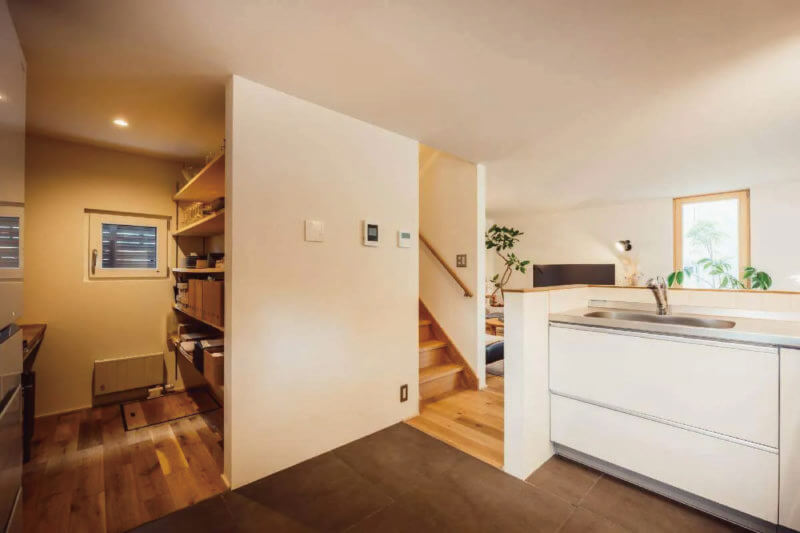 玄関  ⇒  パントリー  ⇒  家事室