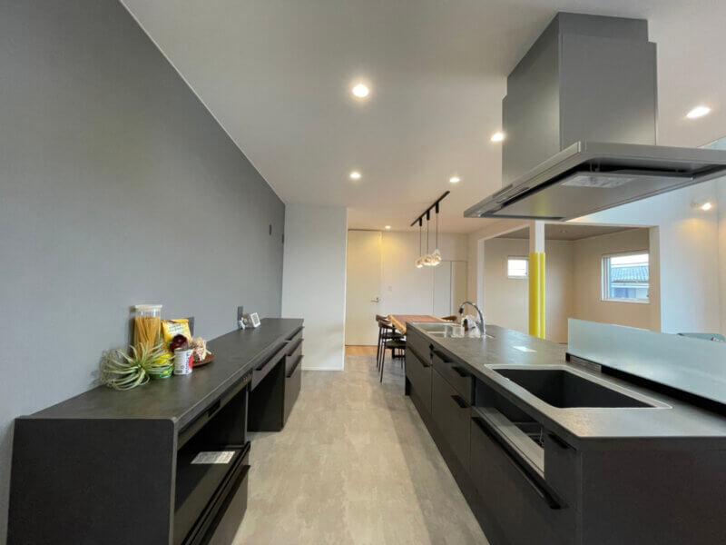 ブラックのアイランドキッチンが主役のお家』