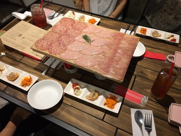 最初に出てくる「生ハムとサラミの盛り合わせ」は絶品です。