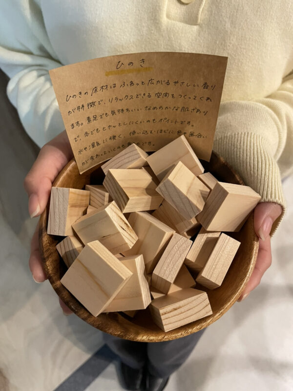 先日、富士市のモデルハウスにお客様をご案内してきました。玄関に立った時にお客様が一言「なんか甘いいいにおいがする!」玄関廻りに施工してあるレッドシダー天然木の香りです。レッドシダーの香りはほんのりと甘く爽やかなウッディーな香りが特徴です。毎日仕事から帰ってこんな香りに迎えられたら癒されますね!こちらのモデルハウスは建物の中に入ってもいろんな材種の天然木が迎えてくれます。 体に触れるところに天然木があると本当に心地よく安心感が生まれます。何かとストレスが多い昨今天然木のお家に住んで毎日リフレッシュしてみてはいかがでしょうか。木に触れてみよう!床材に使う木材を使ったワークショップはこちらから↓