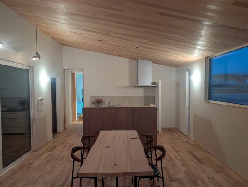 富士山を望む、富士宮市の穏やかな自然に囲まれたロケーション。ご家族の理想を形にした、高性能な自由設計のお住いがまもなく完成します。お施主様のご厚意により、2月には皆さまをお迎えしての見学会を予定しております。どのような想いで、理想の住まいを形にしていかれたのか。今回は、移住や平屋での暮らしを検討されている方にもぜひ参考にしていただきたい、こだわりが詰まった住まいを完成イメージCGとともにご紹介いたします。cg|ダイニングイメージお家を拝見しまして、デッキと繋がる27.5帖のゆったりとしたLDKが印象的に感じました。K様の " 間取りへのこだわり "を教えてください。 はじめから家の形自体をとてもシンプルなものにしたいと思っており(実…