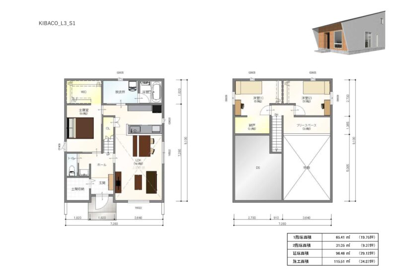富士市富士見台にあるモデルハウス「平屋みたいな二階建て」プラン紹介3LDKで1階に寝室があります。脱衣所は少し広めの空間になっており部屋干しができるようになっています。ガス乾燥機乾太くんもあり、WICまでもすぐなので洗濯→干す→しまうまでがコンパクト。 2階は子供部屋とスタディスペースがあります。使い勝手のいい間取りになってます。