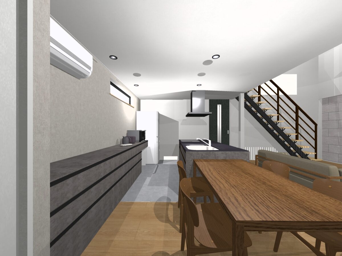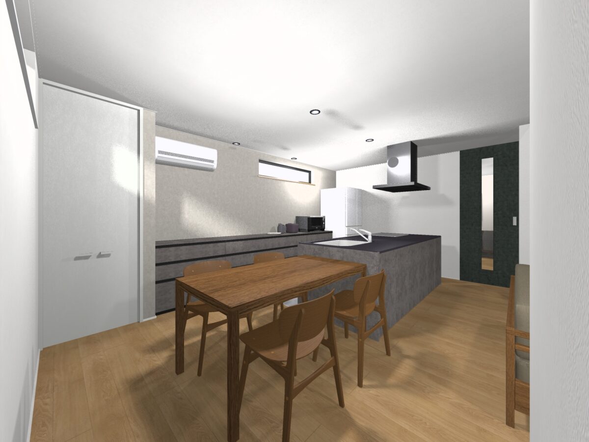 キッチンに横並びでダイニングを配置することで、配膳や片付けの動線もスムーズに。家族との会話を楽しみながら、自然とコミュニケーションが生まれるレイアウトです。