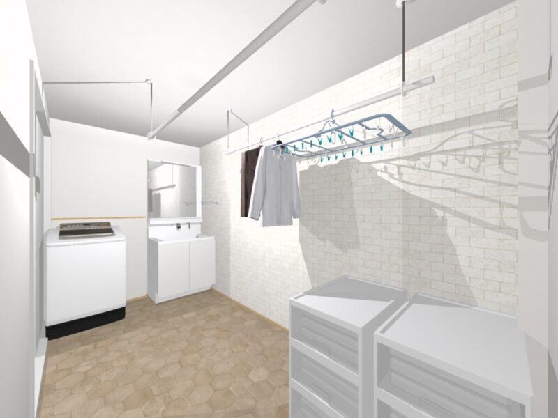 4畳のランドリールームは、主に洗濯物を干すための快適なスペース。