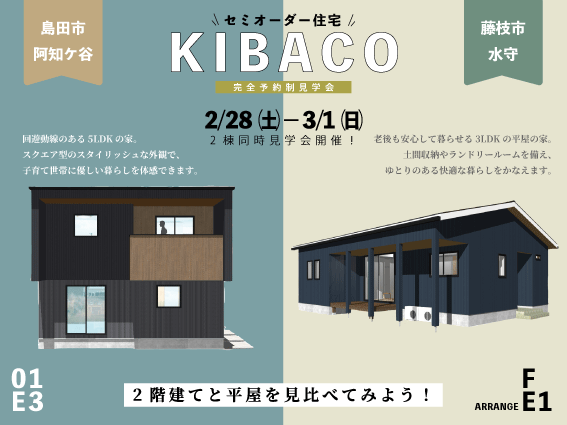 【見学会】2/28㈯~3/1㈰|藤枝市|家事ラクが詰まった平屋の家|「KIBACO(セミオーダー住宅)」