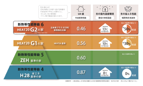 “HEAT20G2(断熱等性能等級6)”が標準仕様です。