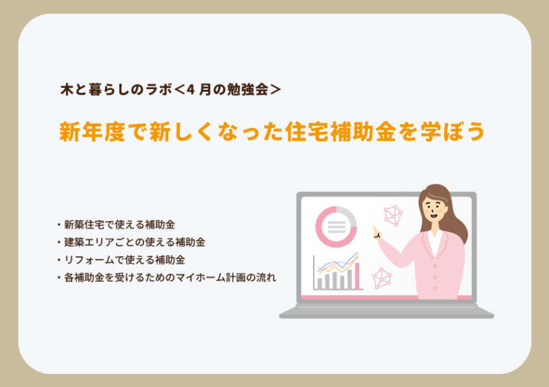 木と暮らしラボ 4月 | 天然木のディスプレイトレーづくり&住宅補助金活用術