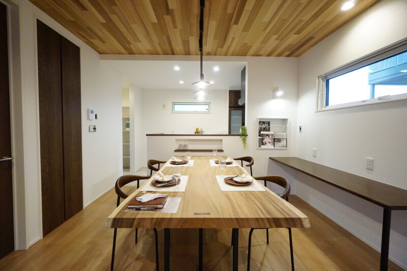 こんにちは。藤枝支店の中山です。今日は和風の平屋完成見学会です。濃いめの木目がお好きなご夫婦。落ち着いたトーンでまとめた大人の雰囲気の建物になりました。LDKの天井には杉材を使用。天然木があるだけでグッと高級感が増しますね!照明計画にもこだわり、TV面に施工した間接照明も素敵です。こちらのお家のご見学は明日まで!ご見学は1時間ごと1組様ずつの完全予約制となります。明日最終日は残りわずか。14時、15時、16時の枠が空いています。見学会詳細・ご予約はこちらから>お気軽にご来場くださいませ。