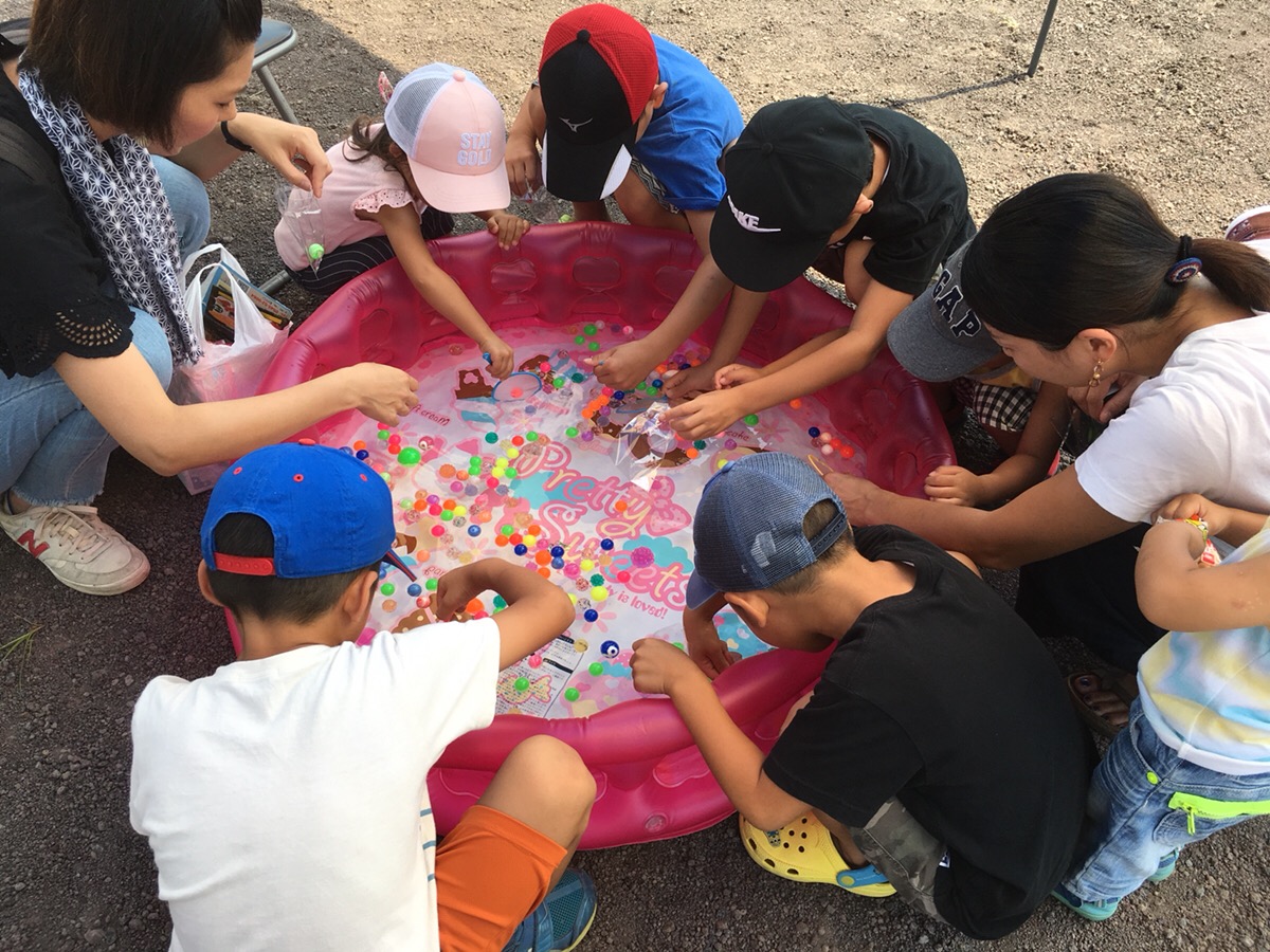 スーパーボールすくいやスイカ割り、ユンボ操縦体験、ワークショップ、ふわふわドームなどなど、