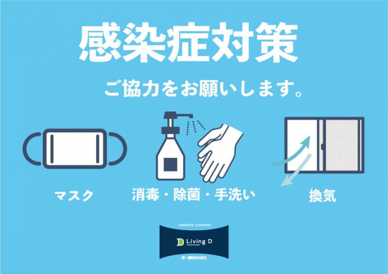 LivingD 第一建設株式会社では、新型コロナウイルスの感染防止・拡大を考慮し、お客様、従業員および関係する皆様の安全と健康を最優先とした上で、