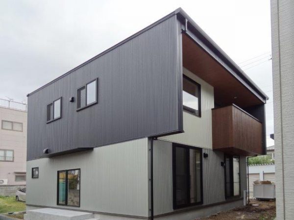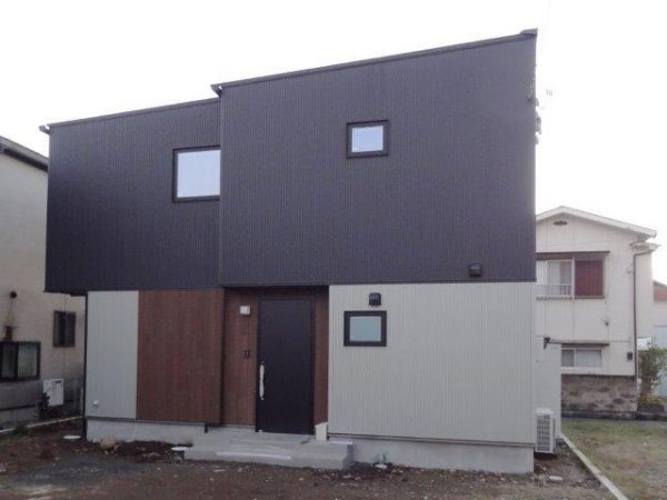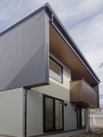 屋根形状・外壁材の材種と張り分けは主にガルバニウム鋼板を利用・高性能サッシ・高断熱性能等々・・