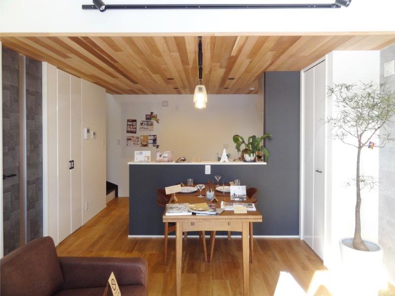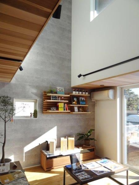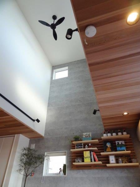 レッドシダー無垢材の天井材と可動棚(アルタナ)が有ります。