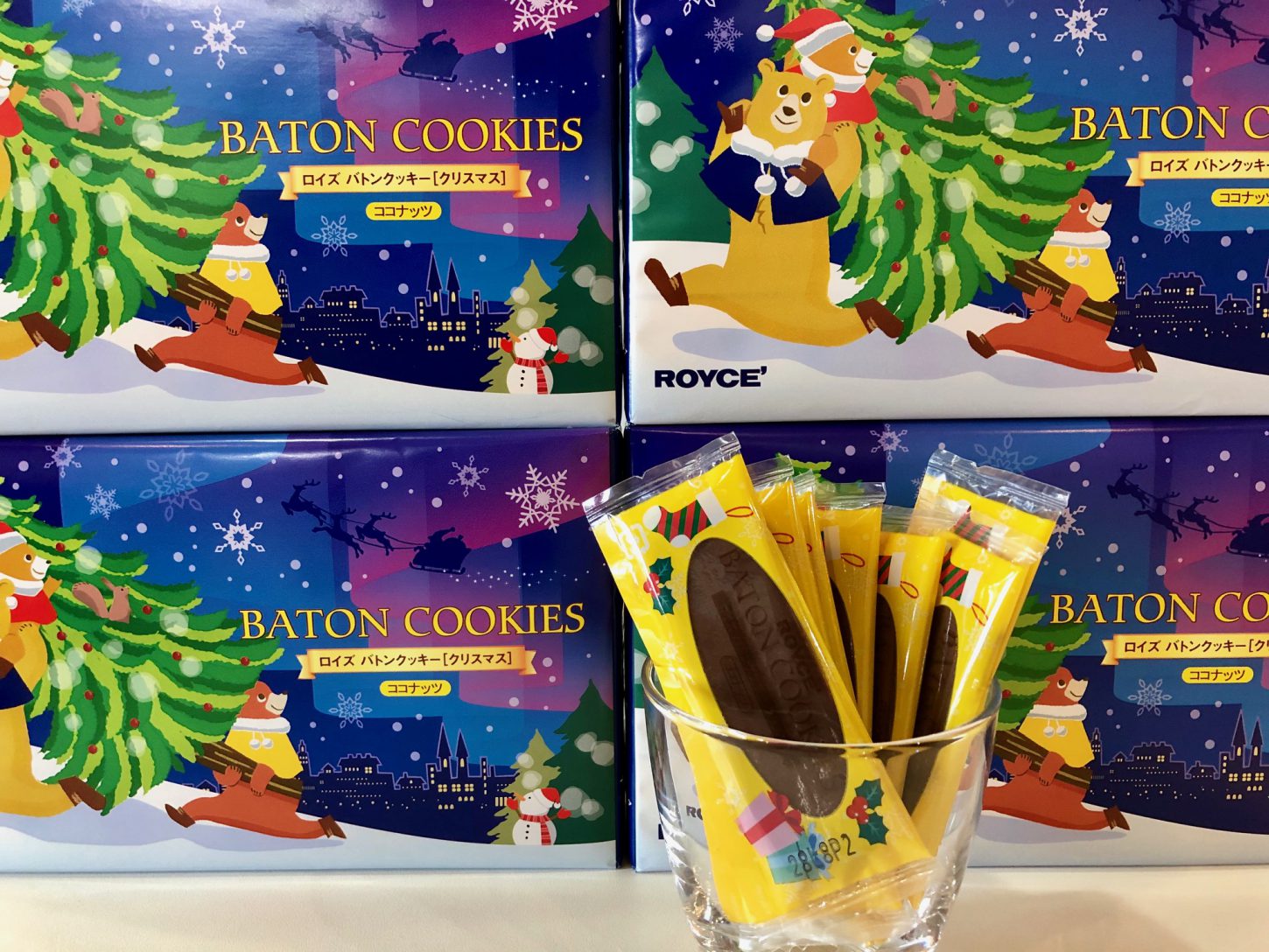 今年も残り1ヶ月を切りました。毎年のように言っていますが、早いですね~さて12月と言えばクリスマス!それにちなんだ今月のお菓子がこちら。ロイズの『バトンクッキー(クリスマス)』です。ローストココナッツを混ぜて焼いたクッキーの片面にチョコをコーティング。サクサク触感とロイズチョコが絶妙なハーモニーです♪※数に限りがございます沼津支店 大石 倭与(おおいし やまと)