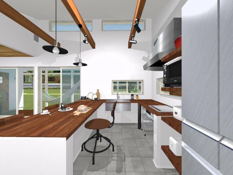 作業性も抜群なコの字型造作キッチンや26帖の広いLDK、インナーガレージなども見所です!