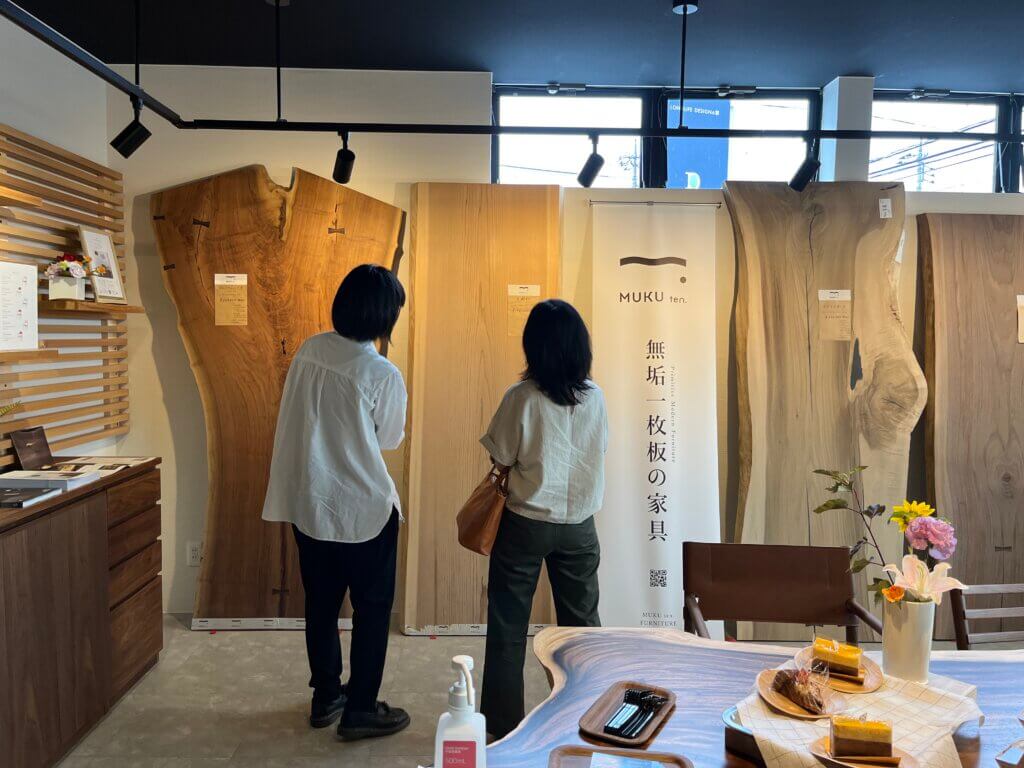 また、弊社オリジナル無垢一枚板MUKU.tenも多数展示販売しています。