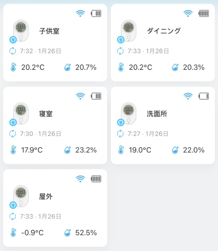 ■寒波到来の2023.1/26(木)朝7時30分頃の室内