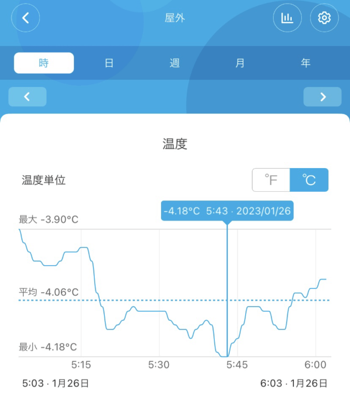 この日の最低気温-4.18℃を計測しました。