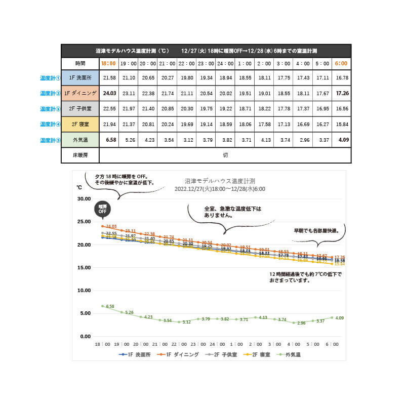 全室ほぼ均等に、緩やかに、室温が下がっていきました。