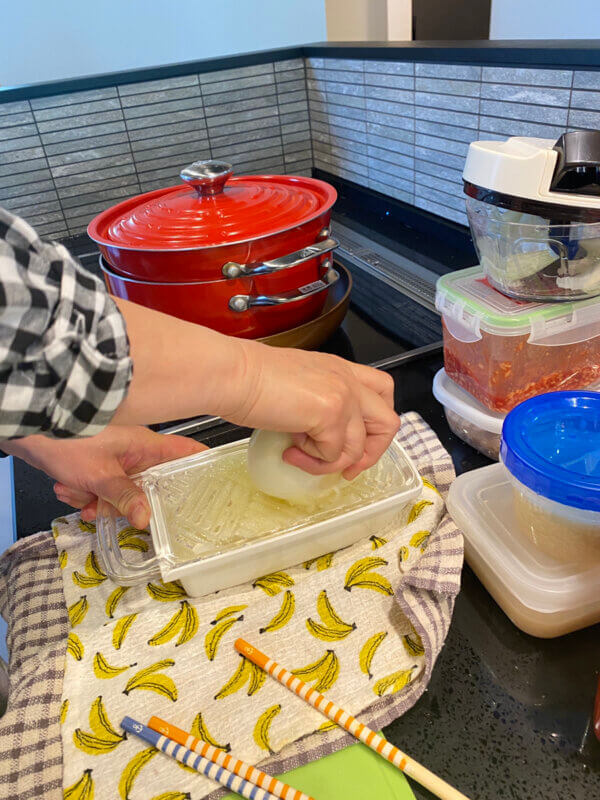 まずは玉ねぎ麹の玉葱をすりおろすところから…