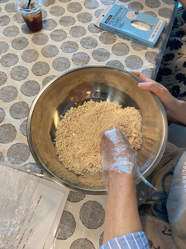 麹もみなさんで“美味しくなあれ”とほぐすとところから…☺