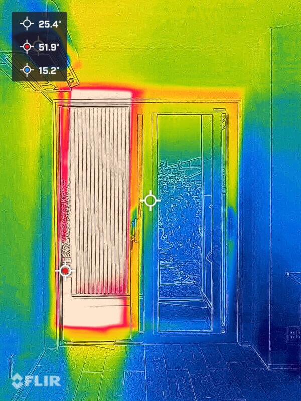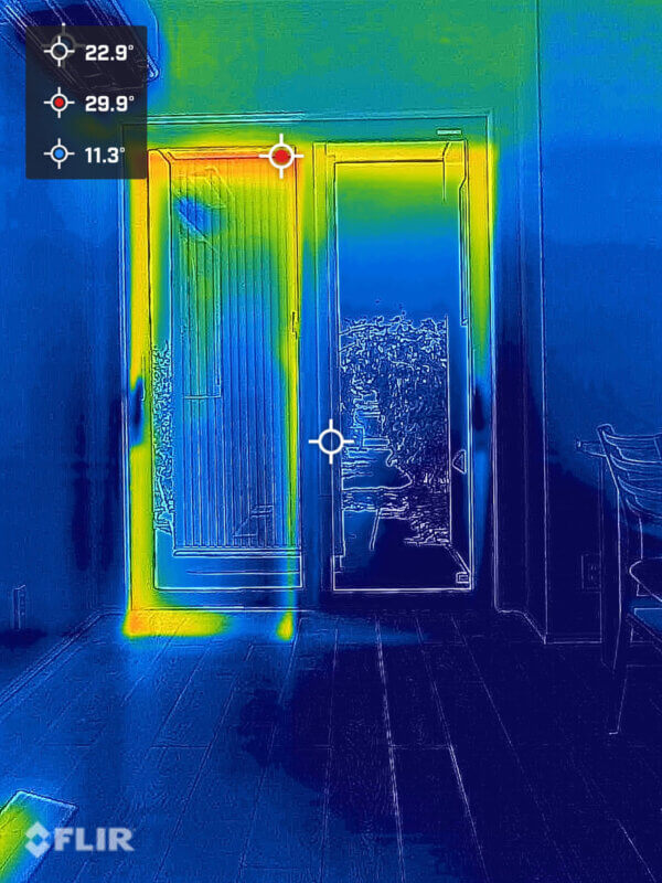 ▼窓を閉めてサーモカメラで撮影するとしっかり外気熱を抑制しています。