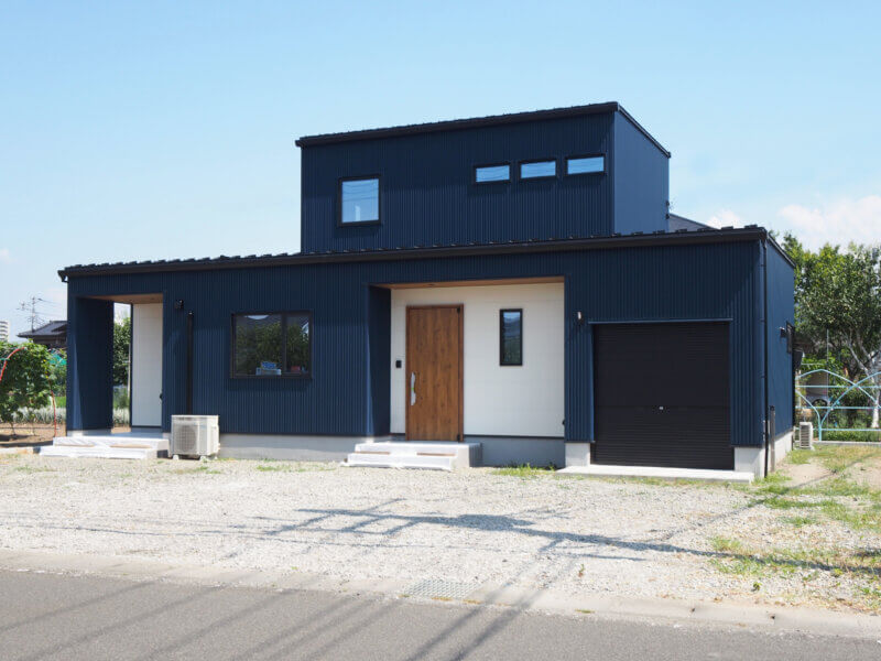 ネイビーのガルバリウム鋼板×ホワイトのサイディングのコンビ