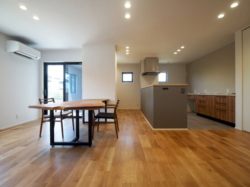 ▼21.5帖のLDK空間。リビング&ダイニングはオーク無垢床。