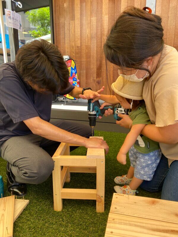 外では人気の【椅子作り体験】や