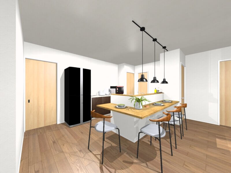 キッチン前には自然と集いたくなるステキなL型カウンターを備えています。