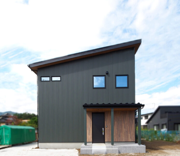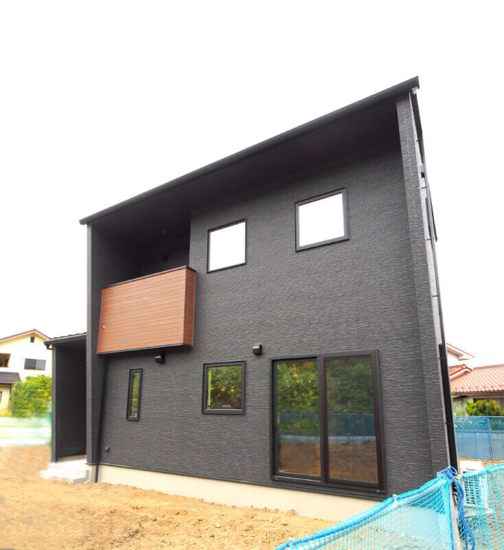斜めに切り込んだサイディングが印象的なスタイリッシュな外観。