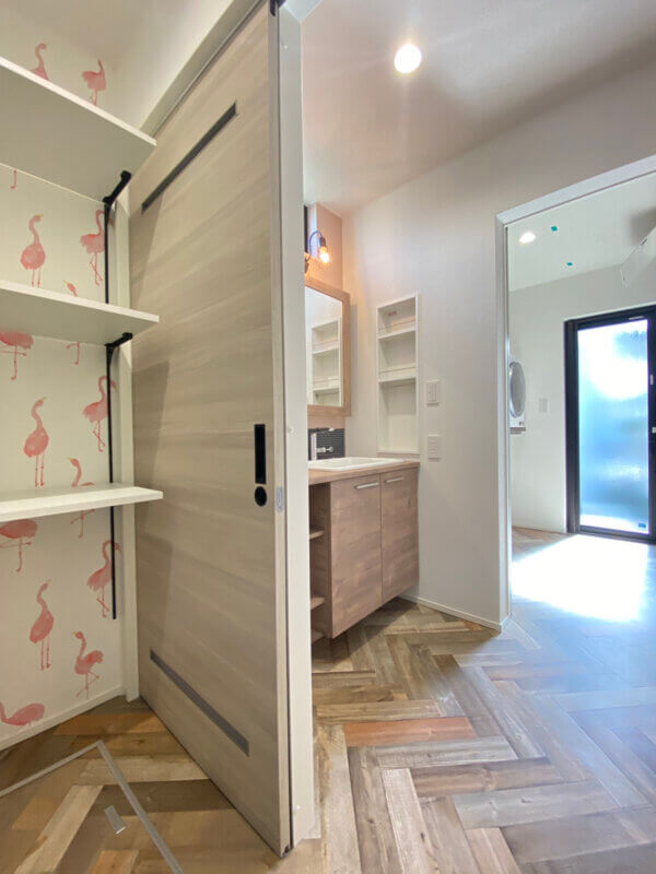 ▼写真手前から 脱衣室→洗面室→ランドリールーム