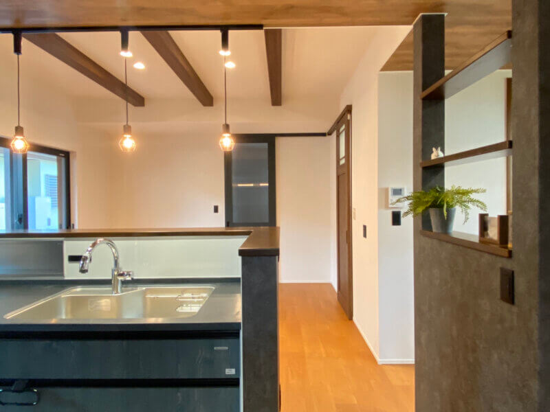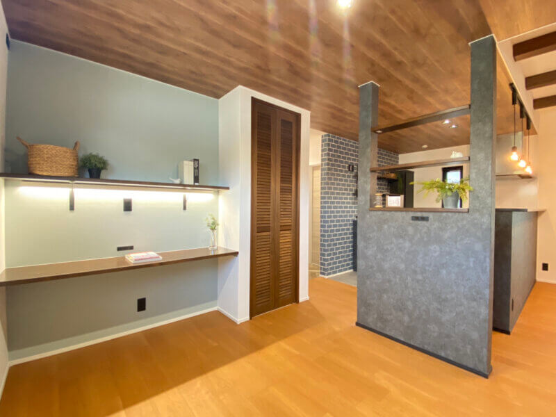 ダイニング対面にはカウンターを設けテレワークやお子様の勉強場所にも。