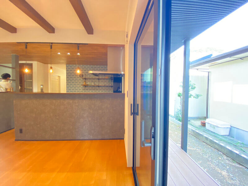 トリプルガラス樹脂窓のリビングからも出入りできます。