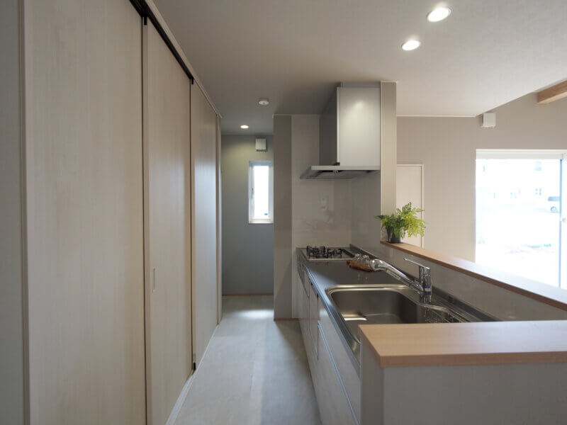 キッチン背面には、大容量収納かつ生活感軽減。