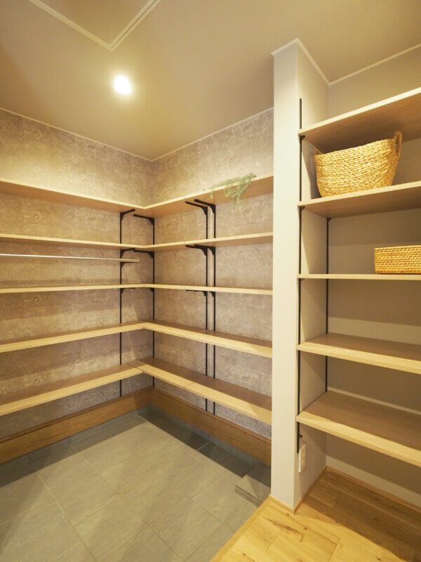 その奥には家電類をまとめて置けるパントリーがあり、