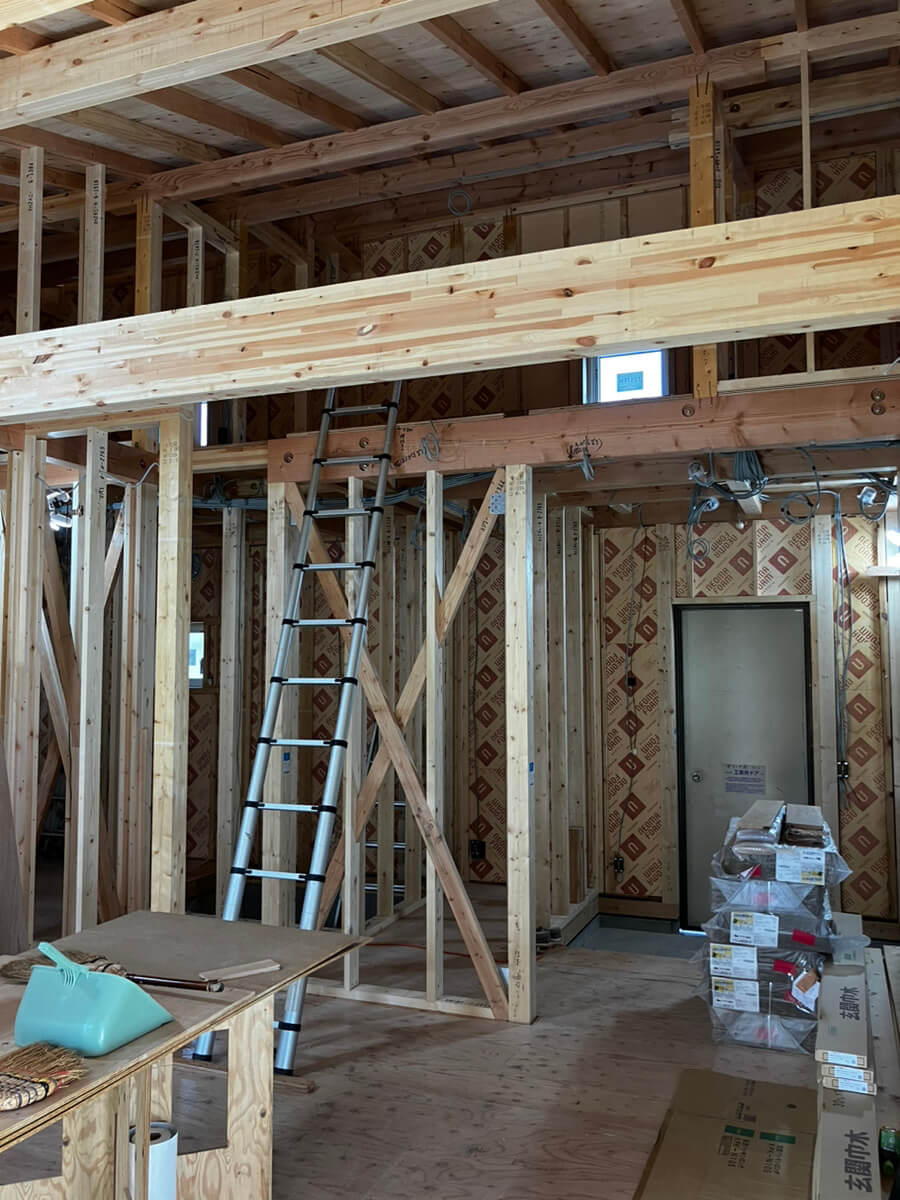 河口湖町小立にて高断熱性能HEAT20G3の平屋をご建築中のO様邸 着々と進んでいます♪【過去ブログ】 sumika搭載 ロフトのある平屋 O様邸着工しました>>工事が進み、CGと同じ形状の外観が見て取れるように*・O様邸は自由設計HIBIKIの平屋のお住まい。リビング階段からロフトスペースに行くことができます。階段下には愛猫のスペースもあります🐈写真のはしごがかかっている上部がロフトスペースに。その広さは16.4帖!ひろびろとした多目的に使えるロフト空間、完成が楽しみです。 O様邸進捗はまた随時UPしていきますね*・・・\9/28(土)より山梨エリアにて2棟の平屋見学会を開催/【西桂町】9/28(土)~10/13(日)自由設計HIBIKI Premium家事ラクを叶えるウォークスルー動線豊かさを生む32坪の平屋 HEAT20G1 >>・【河口湖町】9/28(土)~10/27(日)『2世帯平屋ロフト付き住宅 最高断熱等級7UA値0.21 HEAT20 G3』予約制見学会 >>・\2024.12月【南アルプス市】KIBACO新モデルハウスが誕生します/