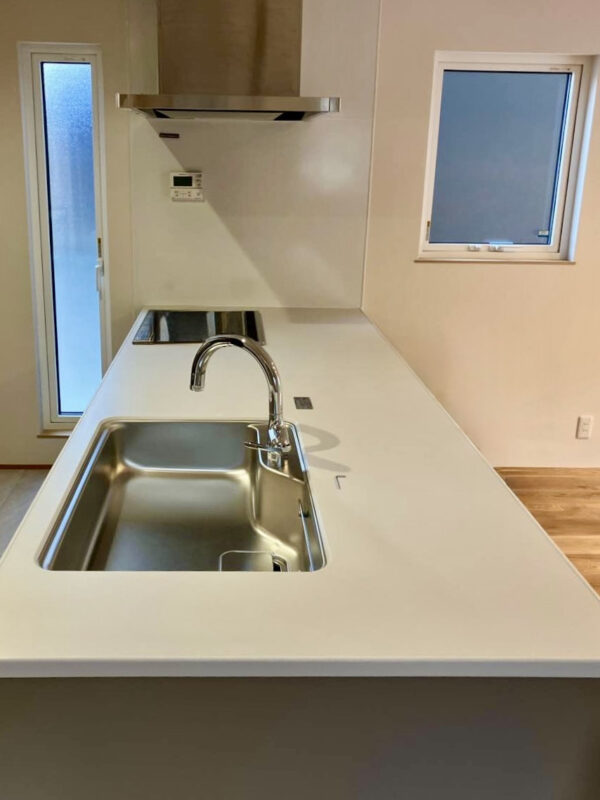 フルフラットキッチンは、料理をしながら会話が生まれる場所に。