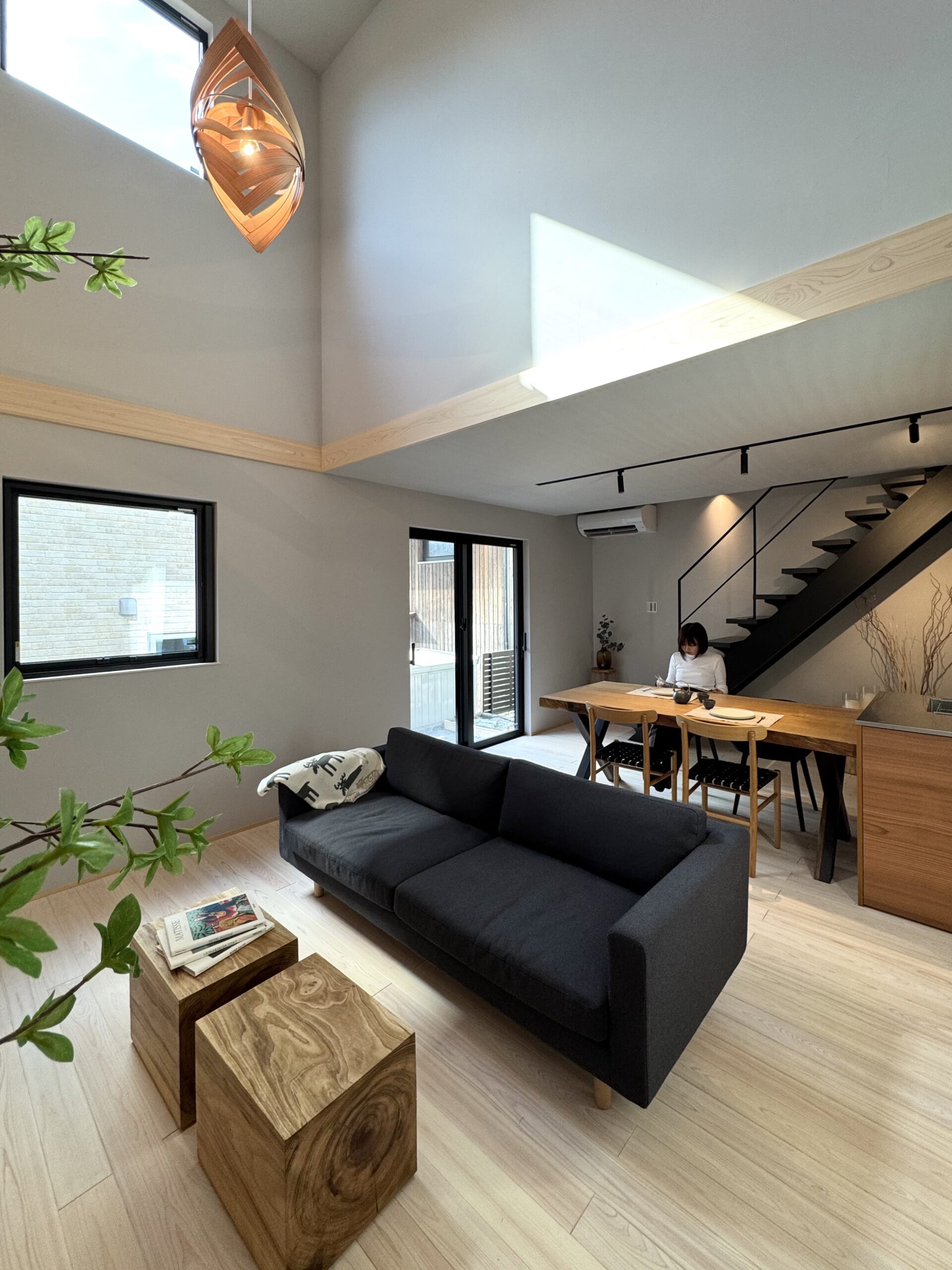 吹き抜けリビングの開放感に、