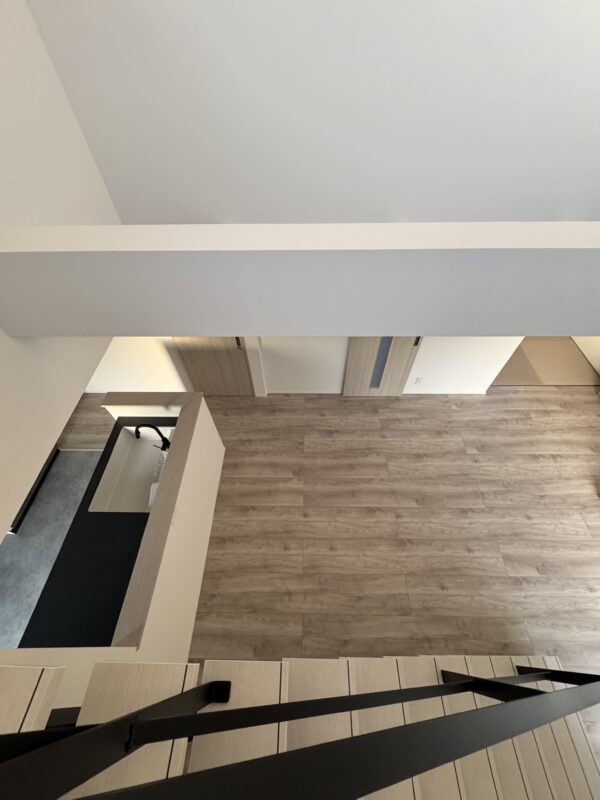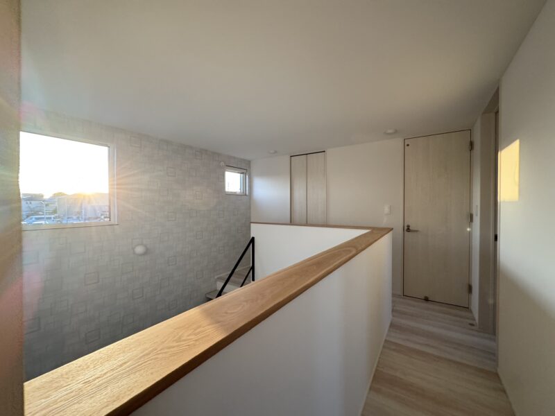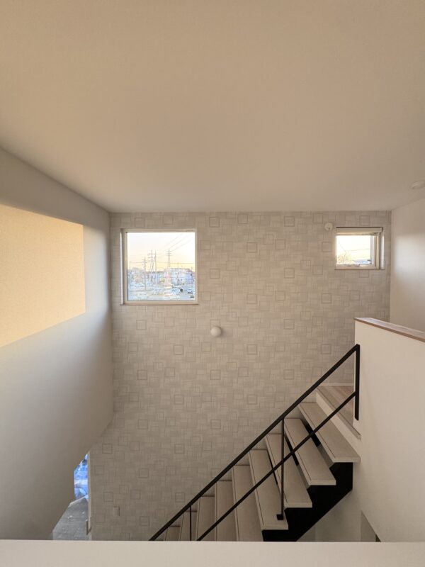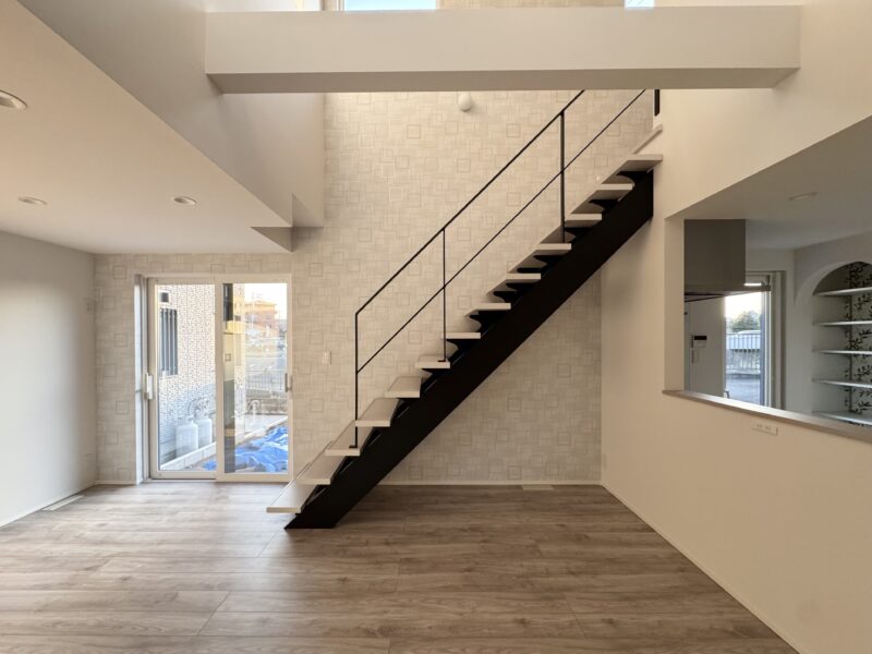 2階からやわらかな光が差し込み、家族が自然と集まる心地よい空間です。