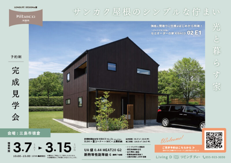 【三島市】光と暮らす吹き抜けLDKの住まい|セミオーダーの家 KIBACO 完成見学会(~3/15まで)