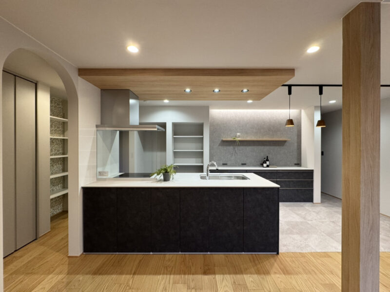 オープンなキッチンに立てば、LDK全体を見渡せて家族の時間がつながります。