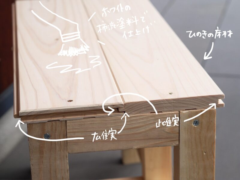 ベンチの座面にその床材を使用しているため、