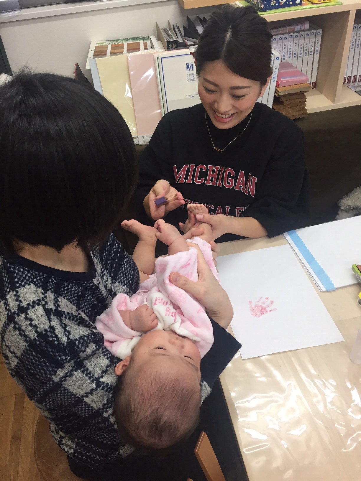 赤ちゃんの足形・手形をキットパスで取っていただいたあと、