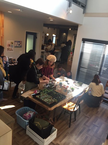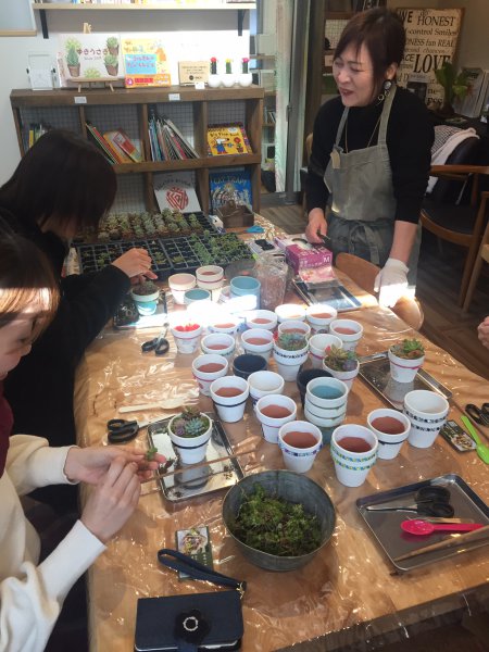 ワークショップは、“ゆきうさぎ”の鈴木さんプレゼンツ「多肉植物の寄せ植えワーク」