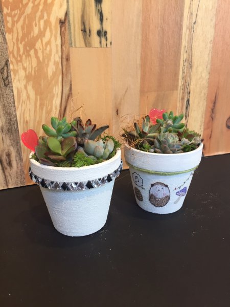 お好きな多肉植物を選んで、お好みの鉢に寄せ植えすることができました。