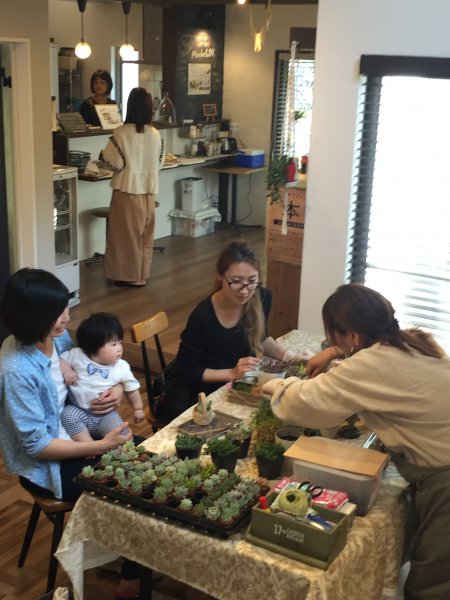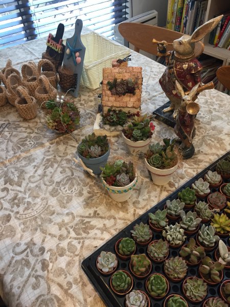ゆきうさぎさんプレゼンツ“多肉寄せ植え”のワークショップの様子。